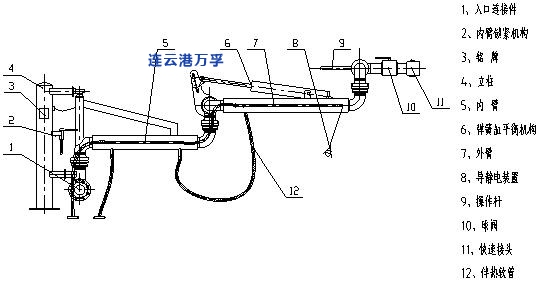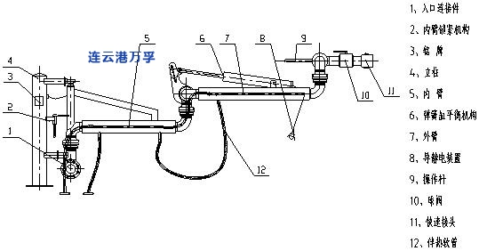 4.外臂:可在水平面和垂直面的范圍內(nèi)轉(zhuǎn)動(dòng),主要用于裝卸臂同槽車、槽船調(diào)整對(duì)接工作位置的部件